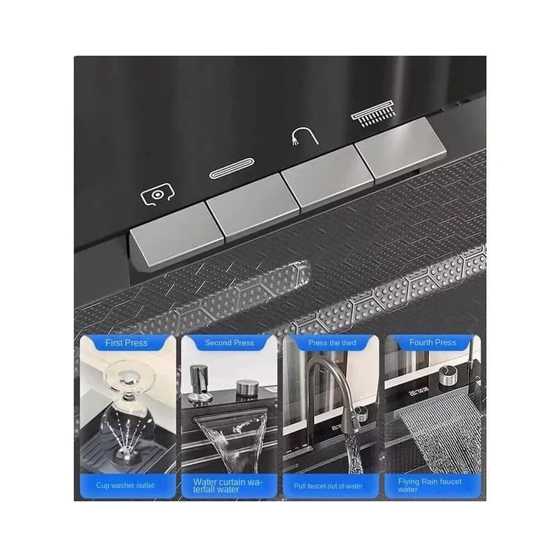 طراحی پیانویی این سینک با پنج کلید برجسته، جلوهای مدرن و متفاوت به فضای آشپزخانه میبخشد. این کلیدها امکان کنترل بخشهای مختلف جریان آب و عملکردهای مرتبط با شستوشو و خشککردن ظروف را فراهم میکنند و کاربر میتواند بدون نیاز به تنظیمات پیچیده، تنها با یک لمس، عملکرد مورد نظر خود را اجرا کند.