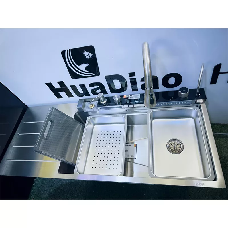 برند HuaDiao در این مدل، ترکیبی از فناوری، طراحی ارگونومیک و متریال باکیفیت را ارائه کرده است تا تجربهای متفاوت از شستوشو و مدیریت آب در آشپزخانه ایجاد شود. وجود پنج کلید پیانویی برجسته، نمایشگر دمای آب و مجموعه کامل لوازم جانبی، این محصول را به یک سینک همهچیزتمام تبدیل کرده است.